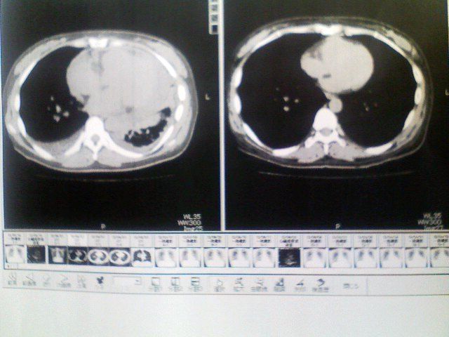 心臓が破れて心嚢液が沢山漏れて心臓が肥大して