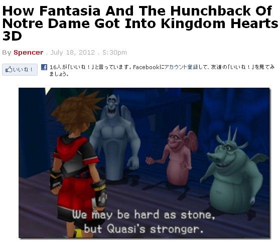 KH:「KH3D」安江氏インタビュー「今回得た技術をPS3で使えたらいい」http://www.siliconera.com/2012/07/18/how-fantasia-and-the-hunchback-of-notre-dame-got-into-kingdom-hearts-3d/