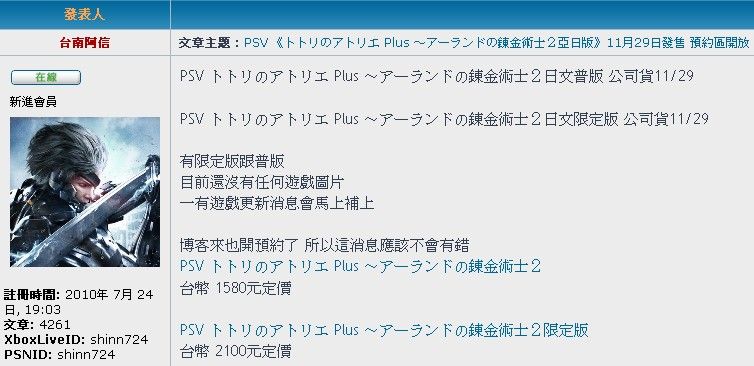 台湾の別のサイトでもトトリVitaの予約開始したらしいお
